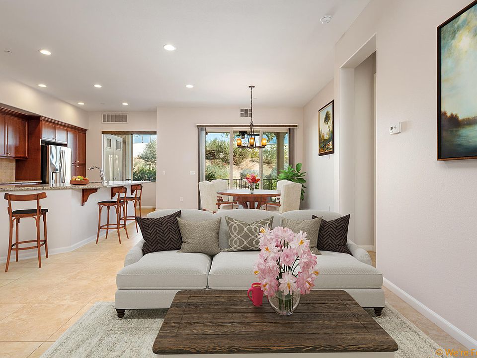 Welcome home to Villa Portofino! Coachella Valley's premier 55 or better community located in the heart of Palm Desert. Easy living awaits you in this two bedroom/two bathroom plus den condo with attached direct access two car garage. No need to bring your handyman over as the two flat screen televisions that convey are already hanging on the wall, the garage has built in cabinets, epoxy floor covering and the entire home was painted when seller vacated. This home has everything you would expect from 2015 construction including HOA owned Solar Panels, Tankless Water Heater, air conditioned lobby, Stainless Steel appliances, Dual Pane Windows and more. The luxurious 30,000 square foot clubhouse has endless amenities including a Concierge, Bistro, Bar, Movie Theater, Library, Meeting Room, Pool, Billiards Room, Fitness Center, Yoga studio and more. You HOA dues include expanded Cable including HBO and Showtime, High Speed Internet, Water, Trash and complimentary movies in onsite theater, yoga classes, aquatic classes and a host of other activities. You have arrived!!!