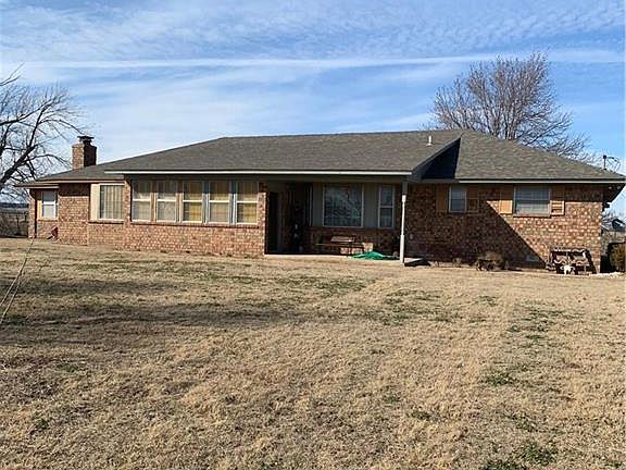 RURAL Living just minutes from I-40 and off Hiway 281. This large, 3 bedroom, 2 full bathroom brick home has a Safe Room. large living room-kitchen combination with a Bonus room on the West end of the home,perhaps for a home office or sunroom for observing sunsets or simply, an indoor place for house plants. Wood burning fireplace supplements this all-electric home. NEW ROOF was put on in Aug. 2018. Kitchen cook-top is NEW, Dec, 2018. Metal Barn, 30 by 40 feet, has a concrete floor with Electricity, a welding outlet & with Tall overhead door. Metal Barn can accommodate boat/pontoon,pickup, ATVs or RV all at the same time! House is on City water but does have working water well on property. New water lines along the property w 5 new frost free faucets. 14 new Champion windows installed July, 2019. NOTE: the kitchen refrigerator, stainless steel fridge plus white chest freezer in garage, and above ground swimming pool are all Reserved items as well as small Red Shed and dog pens!