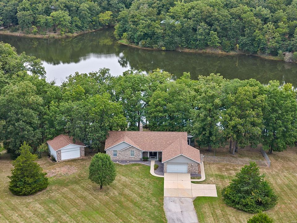 YOUR LAKE PARADISE AWAITS! 3 bed 3 bath full brick ranch home nestled on 3 +\- waterfront acres in a private lake community just minutes from I-70. This stunning property features breathtaking lake views from the 4 season rm, great rm, primary bedroom & bath. The vaulted great room has a custom Pellet fireplace insert, built in shelving & wood bay windows as well as beautiful hardwood floors. French doors lead to the dining room & kitchen with vaulted ceiling. The primary suite has a large walk-in closet and a luxury bathroom with massive double sink, jacuzzi tub and separate shower. Spacious 2nd & 3rd bedrooms, additional 2 full baths & LG laundry room, oversized pantry complete the on main level. The lower level has a storage room and rough in for bath. Other features include an additional 2 car detached garage with concrete floors & electric, maintenance free deck, partial fenced yard, geothermal heating & cooling. Additional Rooms: Sun Room