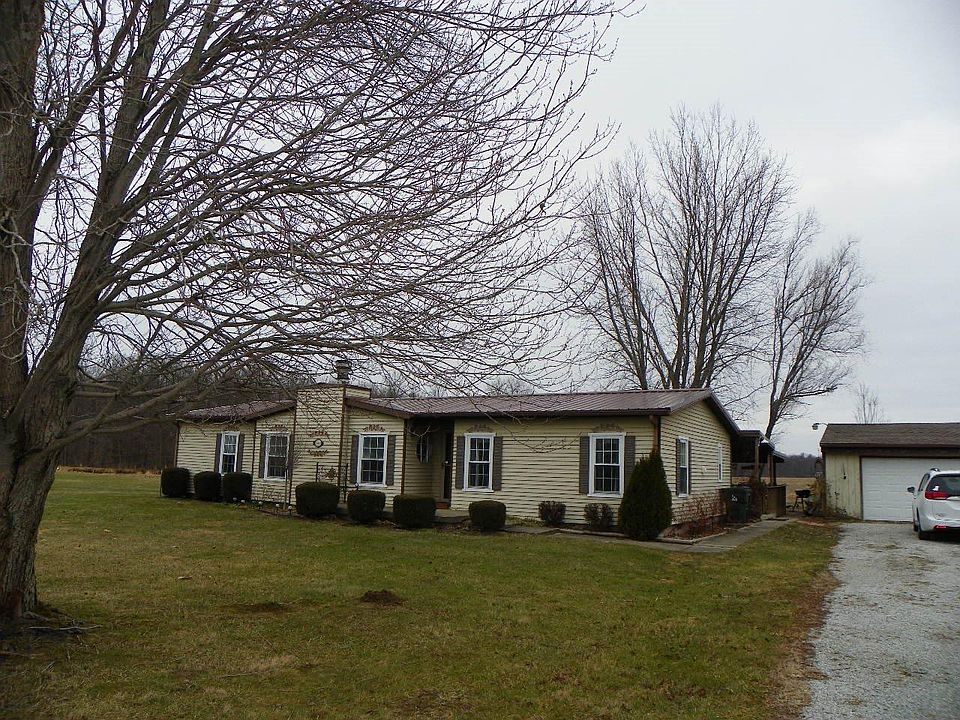 Ranch in the Country with 2+Acres. Beautiful setting. 16Mi. to I-74 Batesville. 3BR 2BA detached garage. 2 brand new bathroom remodels, new paint, new appliances inc. washer and dryer. new lighting. Large master suite with French doors. Covered back porch for relaxing, looks out to pond(NOT on property)Custom blinds and Gazebo facing pond. The barn on this property is stunning inside. Has it's own gas, kithchen, full bath. Finished in notty pine wood. This is priced to sell and will not last. Call for appt. right away.