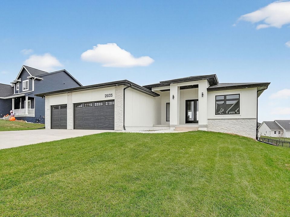 NOW COMPLETED!! AMAZING value for the price with custom builder, Iowa Star Homes!! The six bedroom, three full bath has it all!! Enter through the 8' front door dual grand entry and be welcomed with daylight from the oversized Andersen windows. Your family room showcases features like an accent wall, fireplace with cabinets and floating shelves, and tray ceiling. Flowing into the kitchen all your needs will be met with plenty of cabinets, 9+' island, custom hood vent, and pantry that includes more cabinets, drawers, and shelving. The large MASTER is filled with light from the large windows, has an accent wall, tray, and FULL bath with SOAKER tub and private toilet room. Finishing off the main level are two more bedrooms, guest bath with dual vanity and deep tub with tile surround, and a mudroom and laundry room. The lower level offers an oversized rec space/family room with your second fireplace, FULL walk behind bar, three more bedrooms, and an additional bathroom. The yard will be fully fenced. Oversized composite deck and large patio! Fully insulated and painted 32x25' garage with electric heater, EV charger, and additional 220v. Irrigation. Landscaping. Active radon mitigation system. Furnace humidifier. Kitchen Aid appliances including full fridges on main and lower walk-out level. Call for additional features!