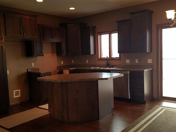 Custom 2 bed, 2 bath ranch walkout w/fresh style! The kitchen features birch cabinets and pullouts in the pantry. Open flr plan of kitchen, dining and living room areas for ease in entertaining guests. The deck, w/beautiful views of the countryside, is accessible from the dining room. The living rm boasts a custom ceiling entry and lighted stairway access to the home's LL. The large master bedroom is a retreat w/master bath, walk-in closet and room for that king size bed. The 2nd bedroom also has a walk-in closet and the home's laundry is conveniently located on the main flr. Also included are a high-efficiency furnace, a large-than-most hot water heater, Andersen Windows and a stone accented front exterior. The LL is ready to add 2 more bedrooms, a bath and family room. The oversized, extra-deep garage is finished and is a dream for the boat lover or person who wants extra storage space. Built by VLC Homes, who have been building in the Brandon School District for over 16 years.