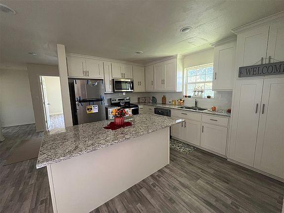 New flooringSplit bedroomsFenced backyardIsland and breakfast barNew appliances in kitchenLarge primary suiteSheetrock and paint