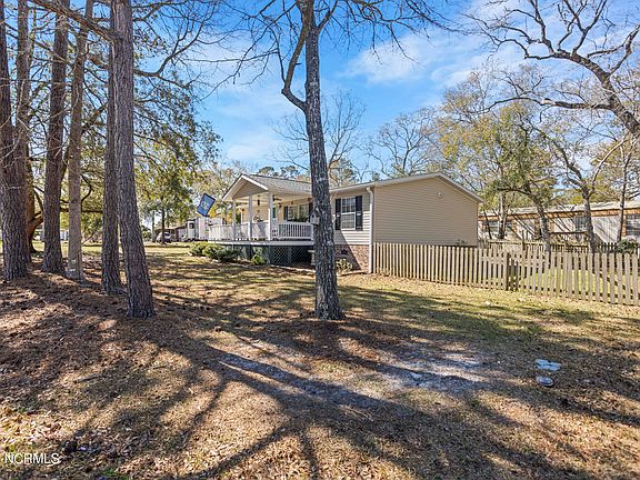 Well maintain 3 bedroom and 2 bath home in Riverside Community on two lots. The property has 3 storage sheds with electricity, 2 car Carport, fencing in back yard. The HVAC was replaced in 2018, New Roof in 2021, New Dishwasher in 2022 and New Refrigerator in 2023. All of the LVP flooring has been replaced between 2021-2024. The screen back porch is a great place to enjoy the cool summer breezes and have a meal. The community has a Boat ramp into the Lockwood Folly River. About 10 minutes away from Holden Beach!