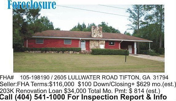 This 1971 square foot single family home has 4 bedrooms and 2.0 bathrooms. This home is located at 2605 Lullwater Rd, Tifton, GA 31794.