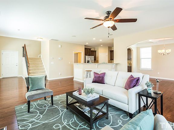 Beautifully maintained home in desirable Rustica Oaks. Wonderful bright and open Julian floor plan with FRESH paint. Hardwood floors and home speaker system installed on main level. Four bedrooms plus an office. Gorgeous kitchen with stainless steel appliances and granite counters throughout home. Spacious master suite with garden tub, separate shower and huge his and hers walk in closets. Community pool and playground. Minutes from downtown Durham, RTP, and I-40. Welcome home!