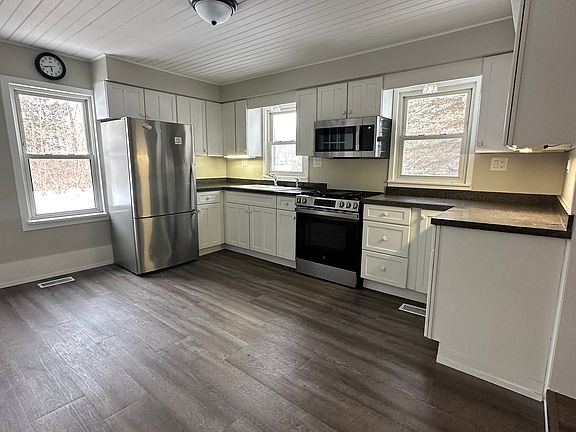 Inside, the home features new flooring, fresh paint throughout, and updated countertops that bring a modern, clean look to the space. The bright sun room is perfect for morning coffee or relaxing evenings overlooking your land.