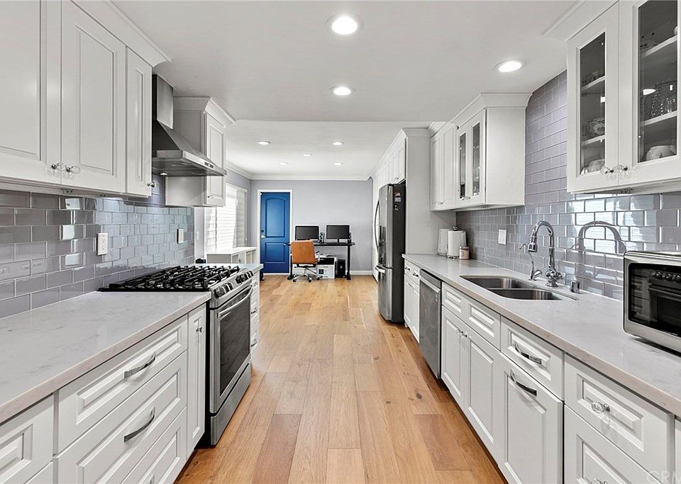 - Recessed Lighting, Stone Counters, Open Floorplan, Built-in Features, Crown Molding, Storage