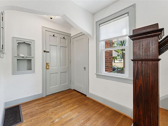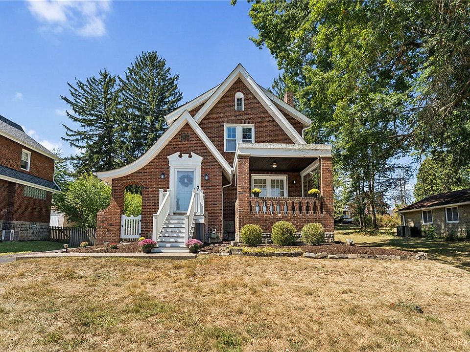 This brick beauty situated in the heart of Shaler Township offers charm & character that will steal your heart!~The large, serene backyard & convenient location will make you want to call it home~The front covered patio is easily accessible from the living room through French doors~The original hardwood floors are in the living & dining rooms as well as the three bedrooms & show the quality seen throughout the home~The well-equipped kitchen is efficiently designed & provides a first-floor laundry along with a mud room area~The oversized dining room accommodates a table & server easily & has extra space if you would like to make a study area~Both bathrooms have been tastefully updated without losing the original charm~There are so many features such as exposed brick, architecture, some original cabinets, etc. that are so charming~The original detached garage is used as a shed & there is plenty of entertainment space for pets, children, gardens, etc. in the stunning backyard~