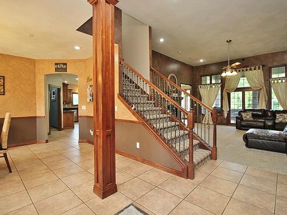 This custom built one-owner home is located on a cul-de-sac with an almost ½ acre lot! Don't worry about needing more room: 3 living areas, 6 bedrooms & 4.5 baths are just the start! The large kitchen has stainless appliances, granite counter tops, island seating, built-in desk & extra cabinets. The high ceilings in the main living room make a statement with the 2-sided gas fireplace shared with the hearth room. Enjoy the beautiful main floor master suite with office, dual walk-in closets & updated master bath. Formal dining room, laundry/mudroom & half bath complete the main floor. Upstairs you will be amazed by the 3 bedrooms, all with walk-in closets, and 2 baths. In the walkout basement you will find a HUGE family room with wet bar, 2 bedrooms & bath, additional storage & storm shelter. The roof is less than 1 year old & the Seller is offering a home warranty. Enjoy the neighborhood zero-entry pool with kiddie splash zone, tennis court, volleyball, basketball, cook-out pavilion & walking/bike trail which are all close by. You pass by the subdivision lake & fountain on your way to the home. Too many things to mention so don't miss out on all the Extras: beautiful woodwork, iron stair railing, video surveillance system, central vacuum, 2 water heaters, air purifier, humidifier & water softener.
