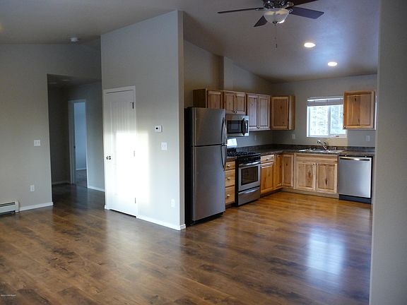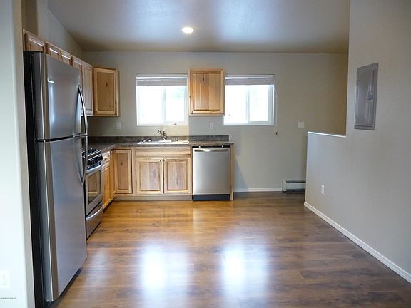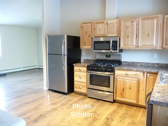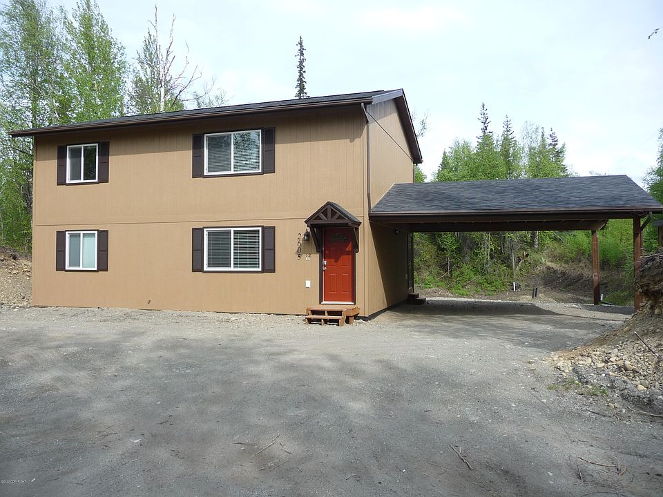 Well maintained, like new duplex near Trunk Rd and Palmer-Wasilla Hwy. Each unit has 2 bedrooms, 1 bath, open living area, stainless steel appliances, washer and dryer, laminate floors, window blinds, storage shed, and carport. Upstairs unit has vaulted ceiling. Good commute location. Can also function as a home w/two separate living spaces and a shared entry way. Rain gutters installed.