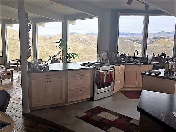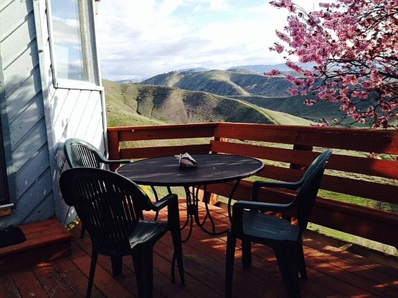Furnished home with gorgeous views. Perched above Harrison Hollow in a quiet cul-de-sac, this home has a large deck with hot tub, a fireplace in the round, and a turret. The home is available with a 1 year lease, and a possible extension. Four bedroms, 2.5 bathrooms. Beautiful wood flooring has replaced carpeting on the main level. Modern appliances, central a/c and heat, & laundry. Owner lives 15 minutes away. Renter responsible for payment of all utilities. First and last month's rent due upon lease signing.