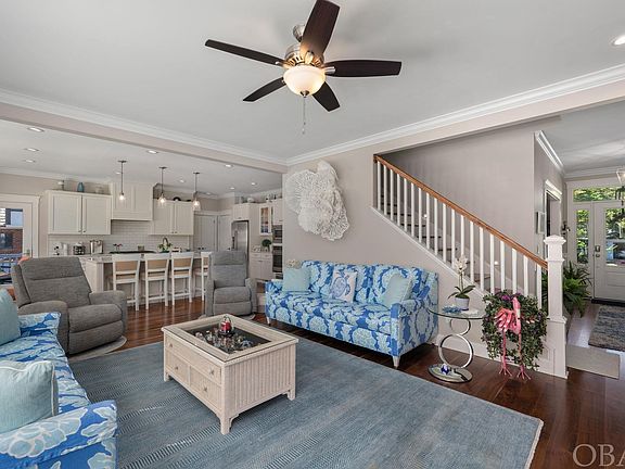 Nags Head Acres custom home built in 2021 is ready for you. The unique design boasts Walnut hardwood throughout the main level, an eye catching kitchen highlighted by quartz countertops and Café appliances, gas stove, an ensuite bedroom with a very impressive bathroom offering a large soaking tub, a tiled stand-up shower, a vanity with a quartz countertop, and a walk-in closet. The gorgeous foyer also has a spacious room which could be used as a library, office or formal dining room. There is also a cozy gas fireplace, crown molding, a tankless water heater, a half bathroom, and a laundry room. The top floor has three bedrooms, one bathroom, and a large storage area/attic which could be finished add more heated living area. There is also a large two-car garage which is off of the kitchen. Plush and beautiful, the fenced back yard showcases a sun deck built with Trex, a covered deck area, composite siding. The encapsulated crawlspace with a dehumidifier makes the access clean. This home is also equipped with a Generac whole house generator. Houses in this condition don't come along often... Book your showing today.