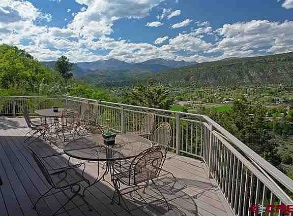 This home represents the perfect blend of in-town living with unmatched views of Durango, the mountains and Animas Valley. Rarely does an "on the rim" property such as this become available. In fact, there are only four that even exist. The timeless design by award winning local Architect and Durango City Councilman, Dean Brookie, and superb craftsmanship of Corey Off are hallmarks that characterize this 4,000 sq ft home with three bedrooms and two full plus two half baths. An additional 1,500 sq. ft. of outdoor living space can be enjoyed on the terraced decks. From the beginning, this home was designed to be an ideal space for both entertaining as well as everyday living. Over the years, it has delivered that in spades. Floor to ceiling windows in the Great Room offer inspirational views unlike anything else you will see in our area. The Great Room graciously flows into the Dining Area creating a seamless space for you and your guests to enjoy. There is comfortable seating in front of an authentic wood burning fireplace, perfect for snowy winter evenings. A spacious Master Bedroom has built-in cabinets, desks, television and a cozy sitting area with a gas fireplace. The desk areas off the bedroom create a challenge of the mind - focus on your work or the incredible views? The Master Bathroom is spacious with a Jacuzzi tub and separate shower. Just off this bath is a large walk-in closet complete with side-by-side washer and dryer. The custom Kitchen has double ovens (standard and convection), numerous cabinets (plus pantry) and service bar to the Dining Room. The dine-in kitchen area overlooks the landscaped front patio. The lower Guest Level can be accessed from the main Living Area, but also has its own entrance, making it perfect for visiting children, in-laws or guests. This space has a well-equipped kitchenette which is open to the Family Room, two Bedrooms with mountain views, a fireplace and separate covered patio deck with cascading waterfall. On this level you will also find 900 sq. ft. of storage just waiting for all those items that you need to tuck away. An attached three car Garage is heated and provides for even more storage. Adjacent to the garage is a space for RV parking with water, sewer and electrical hook-ups. The outside yard is a breeze with xeriscape landscaping (no lawn to mow) and an automatic sprinkler system for perennials. Thereâs even space for a garden for those with a green thumb. It doesn't stop there. Other property highlights include: Gorgeous, handcrafted built-in cabinets, drawers and buffet, air conditioning, security system & triple glazed energy efficient windows. Hillcrest Golf Course is just across the street. If golf is not your sport, then the cross-country skiing on the course during the winter months might strike your fancy. If the Arts are more your cup of tea, you are not far from the theatrical and musical talents performing at the Community Concert Hall. This is an opportunity to have outstanding views, privacy and an incredible home all within minutes of downtown Durango.