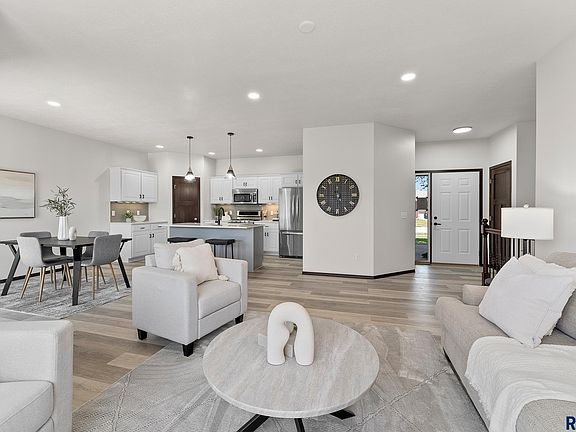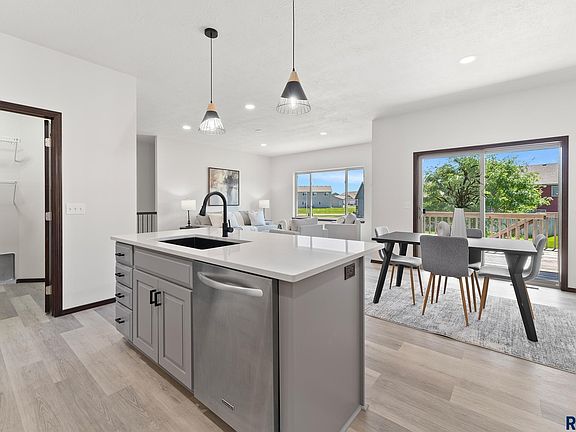 What a show stopper! This home has been completely remodeled from top to bottom, & is ready for your charm. Main level boasts an open floor plan w/ beautiful vinyl plank flooring in the living, kitchen & dining. Gorgeous stone countertops with backsplash, large pantry & island w/ seating are definitely an added bonus, & slider access to the covered deck and large yard. All 3 beds on the main have new carpet, including the primary w/ its own private bath (2 sinks) & walk in closet. This level is completed w/ main floor laundry. Downstairs be awed by the huge family room space which includes an electric fireplace & bar area. Entertaining & movie nights never looked better! Garden view windows add to the natural light. An additional 2 good sized bedrooms, 3/4 bath & storage room complete the lower level. Outside, enjoy the large backyard & covered deck. Nice front covered porch. Garage is huge, oversized 3 stall with floor drain. Owner is a licensed realtor in the state of SD.