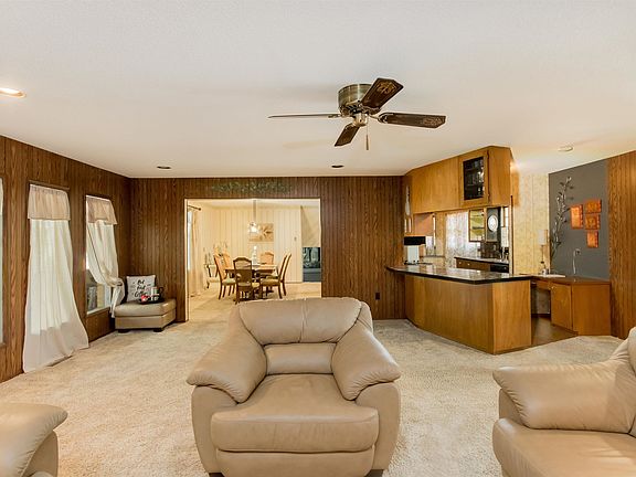 Beautiful split-level home that backs into the Leon Robinson Park! Live just 2 blocks away from St. Margaret Mary School in this spacious 3 bed, 2.5 bath, single family home sitting on 0.26 acres. Over 1,900 sq ft of interior space with plenty of rooms to entertain family and friends. Starting with a covered front lanai, enjoy privacy as you receive visitors or parcels without being scrutinized from the roadside. Come inside and you will be welcomed with an open floor plan with cozy decor and designer light fixtures. Hardwood floor panels complement the brick fireplace of the great room where a kitchen bar counter juts out which you could use as a wine bar or an informal breakfast counter. The formal dining room enjoys a streetview with a large window, while having easy access to the service side of the kitchen, the lower level and its family room, and the upper level where the bedrooms and baths are located. A sun room with an informal dining area looks out to the fully-fenced private backyard, where the entertainment options extend outdoors. A patio by the pool sits on a landscaped portion of the yard, complete with a diving board and landscaped garden boxes. A large open deck can be used for poolside parties in fair weather. There is a dedicated pool house with a changing room right by the patio; a perfect amenity for guests. There is plenty of open space left in the private yard, so you can do more DIY projects. This is a move-in ready dream home perfect for a growing and active family. E Pawnee and its commercial outlets are a quick drive away, so you have convenient reach of everywhere you need to be. Come see this exquisite listing; this is expected to sell FAST! Call today to schedule your very own exclusive showing.