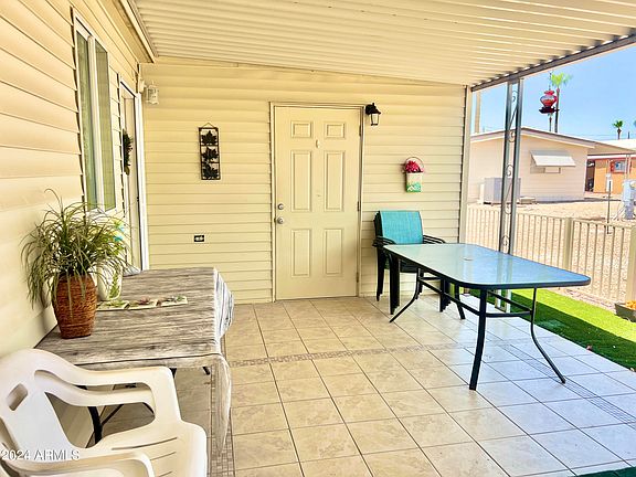 As you enter, you'll be greeted by a spacious living room that serves as the heart of this split floor plan. The fully equipped kitchen boasts all necessary appliances, complemented by laminate flooring, and includes an adjacent washer and dryer for your convenience. This home also features an enclosed attached workshop or storage area, a separate storage shed, and a private, fenced sun patio, perfect for soaking up the Arizona sun CLICK MORE Experience the vibrant lifestyle of this family-owned community, which offers an array of amenities designed to enhance your quality of life. Enjoy social activities at the clubhouse, challenge friends to a game of billiards or pickleball, or take a leisurely swim in the heated pool. The community also features a dog park, tennis courts, a spa, a laundry facility, and a fully-equipped workout center. All this is set against the breathtaking backdrop of the Superstition Mountains, providing spectacular views every day.