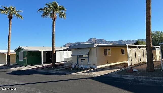 Are you in search of a home away from home or looking to relocate a family member closer to you? Explore this charming 1-bedroom, 1-bathroom residence located in the peaceful 55+ Community of Raindance Mobile Home Park in Apache Junction. Key upgrades include a new A/C unit installed in July 2024, a water heater replaced in February 2024, and a washer and dryer that are just one year old. The property also features two sheds, both equipped with electricity and will be fully furnished. Enjoy the stunning views of the Superstition Mountains, as well as easy access to Canyon Lake and Saguaro Lake, all conveniently located near the US 60 Freeway. Buyers and their agents are encouraged to verify all information and figures as part of their due diligence