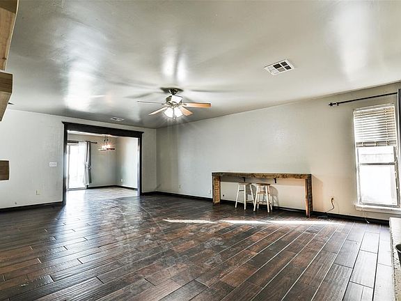 This 4 bedroom home has TONS of space and cabinets for that large family or that owner that needs storage. Home features 2 large living rooms (one can be made as a TV/game room), one of the living rooms features a desk nook. New flooring and painting has been done. Kitchen has been remodeled, has tons of storage and gas hook up for stove; large pantry / laundry room next to kitchen. Bedrooms are of good size, hall bathroom shower has been remodeled. Don't need a 4th bedroom? Use upstairs room as a flex room of your choice (study, workout area, etc.). Roof was replaced in 2022, hot water tank was replaced in 2020. Storm shelter in garage. Minutes away from a number of shops and stores, easy highway access to I-44, downtown and airport. Schedule your private showing today...MOORE SCHOOLS!