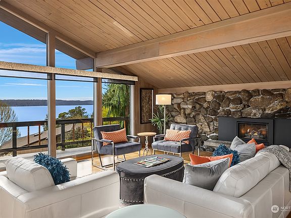 Welcome to Puget Sound lifestyle w/ this vibrant Mid Century in the serene waterfront community of Seahurst West. Overlooking West-facing views of the water & Olympics, the home offers a main level floor plan + an additional living unit accessible via elevator & separate outside entrance. Vaulted ceilings, clear cedar walls, open floor plan & picture windows, all flowing into the outdoor. The striking basalt fireplace anchors the living room enhancing the architectural house lines. The kitchen opens up onto a totally private patio ideal for summer barbecues & casual eating. Drive down to the cul-de-sac leading to the secret, private beach open to the community residents: picnic tables, lawn & sand await you. Min to charming Olde Burien.