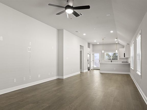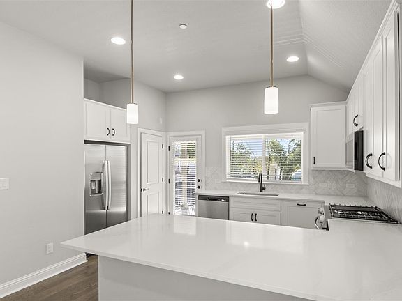 Unit 48, the one-story new home, stands out in the premium community, Clear Creek. The house's layout is excellent for entertaining or relaxing, with features like a rear covered patio with a gas drop for BBQing and an open floor plan. The interior of the homes features modern finishes such as brown bathroom cabinets, Silestone countertops, blinds for privacy, and a ceiling fan in the living room and primary suite. In the kitchen, you'll find white kitchen cabinets, 42-inch upper cabinets, and stainless steel appliances, including the refrigerator. While the primary suite showcases a bay window to let in natural light, a walk-in shower, and a dual vanity, it adds a bit of luxury to everyday living.