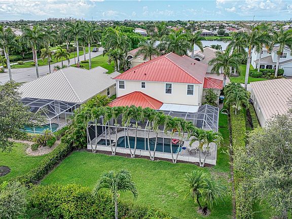 SOMETIMES A HOME comes on the market whose FLOOR PLAN is SO VERSATILE, it offers many solutions to today's housing challenges. In the heart of CAPE CORAL, FL lies the 524 acre TROPICAL COMMUNITY of SANDOVAL. FAMILY & PET FRIENDLY, the lushly landscaped, vibrant community is home to this magnificent 5 BED, 4-1/2 BATH, 3 CAR GARAGE, HEATED SALT WATER POOL/SPA, w/FENCED BACKYARD HOME. (see attached floorplan) The main floor offers not only a PRIVATE BEDROOM & PRIVATE ENSUITE BATH, it also has FLEX SPACE to accommodate a WORK FROM HOME family requiring space for TWO HOME OFFICES. Secluded away from the heart of the home are 4 spacious bedrooms and 3 full baths on the second level, featuring 2 MASTER SUITES. W/PRIVATE BATHS. This floorplan adapts to all types of family situations: from a LARGE FAMILY to a MULTI-GENERATIONAL FAMILY. Built in 2013 as an ESTATE HOME in Sandoval, it features a NEW METAL ROOF (warranty transferrable to new owner), FRESH EXTERIOR PAINT, A TANKLESS HOT WATER SYSTEM (for an endless supply of hot water), 2-ZONE AIR CONDITIONING SYSTEM & SUSPENDED STORAGE RACKS in the TRIPLE CAR GARAGE. The ENTERTAINMENT SIZE LANAI, boasts a TRAVERTINE PAVER pool deck & sun bathing shelf and a heated SPA perfect for hosting relaxed family meals as well as large social gatherings.