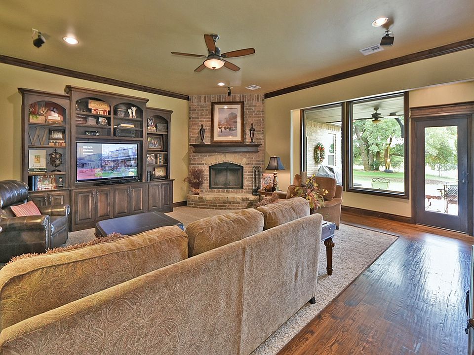An amazing private setting is awaiting you on one of the premium lots/locations in desirable Bella Terra! Enjoy the spectacular view while sitting out under your large covered patio as well as a partially enclosed outdoor living space w/ fireplace! The house itself has a great floor plan that offers an isolated master suite & 2 other beds down then a large gameroom & 4th bed up! Also there is an optional unfinished bonus space if you would like to add a theatre room. Large study & dining areas, expansive living space throughout, open kitchen/living arrangement... Designer decor throughout, extensive crown moldings & trim work, stunning double 8"entry doors, side entry garage w/ a flat driveway (ideal for the kiddos). Easy access to I-35 making for an easy & predictable commute to virtually anywhere! Desirable Centennial Elementary School district that has been named a Great Expectations Model School, Great Expectations schools have a culture of respect and high academic achievement!!!