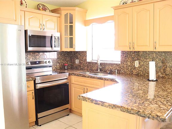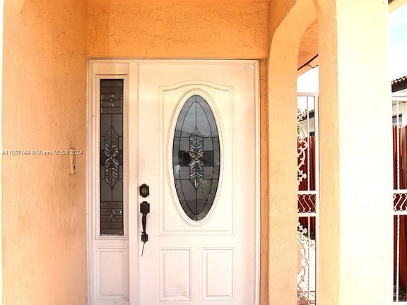 This single-family home in Hialeah, FL features 3 bedrooms, 2 bathrooms, tile flooring, a new range and microwave, a titan water heater, and a covered patio.