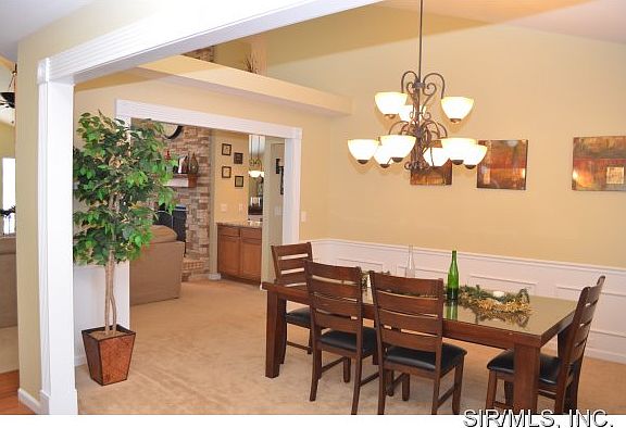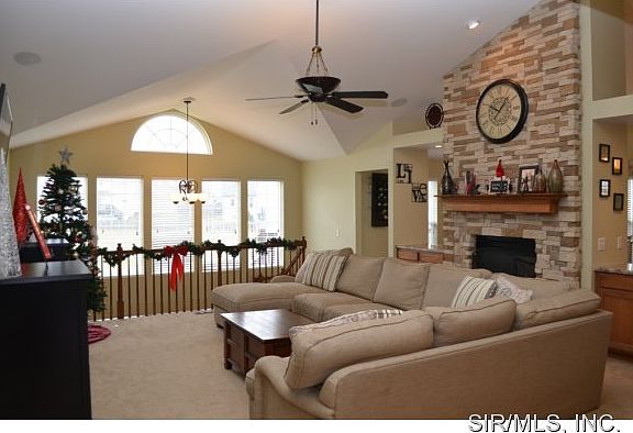THE EXTREMELY POPULAR ESSEX PLAN that is no longer available in new construction in Illinois. This sprawling lookout atrium ranch floorplan has an amazing vaulted ceiling through the living room and kitchen with a see through fireplace to both areas. The luxury kitchen has built in double ovens, gas stove top in the butterfly island, walk in pantry, refrigerator to stay, and upgraded cabinetry. The master bedroom has a trayed ceiling and a luxury master bath. A bonus area on the main floor is a great addition for a den or play area. The basement is finished with another family room, bath and the 4th bedroom. Three car garage, irrigation system, whole house audio (only needs the components!), washer and dryer, community pool, and just minutes to Scott Air Force Base, shopping and I64. This one will go quick!