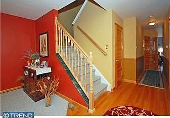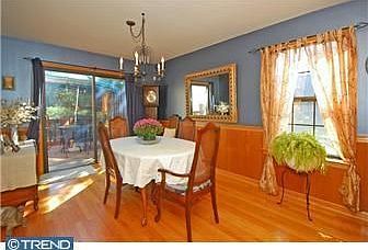 Lovely sun-filled end townhome in prime location featuring a much sought after first floor master bedroom suite and two car garage. Living room with wood burning fireplace, palladium windows, vaulted ceiling with two skylights. Formal diningroom with beadboard, hardwood floors and slider to large deck. Delightful eat-in kitchen with hardwood floors, powder room. Second floor boasts 2 large bedrooms with extra large closets and a full bath. Basement has a finished family room with granite counters for your entertainment center, storage room, laundry and entrance to 2 car oversized garage. One Year Home Warranty included.