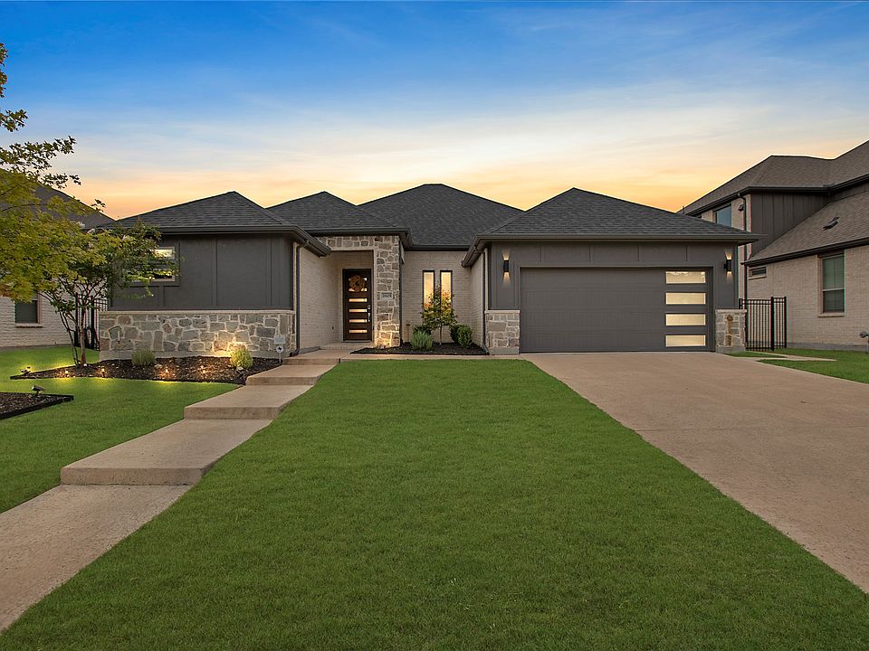 Step into luxury in this breathtaking single-story north facing home in the sought-after Hollyhock community, Frisco. Completed in 2021 by Trophy Signature Homes, this meticulously maintained, energy-efficient home offers 3 beds, 2 baths, PLUS an office, with an open, bright floor plan and soaring ceilings throughout. Designed for both style and function, this home boasts upgraded appliances, sleek modern design throughout, a tankless water heater, Smart Home security, new French drain, added fence lighting and upgraded light fixtures. Enjoy newly added motorized patio shades in the expansive backyard, perfect for adding your dream pool, with plenty of room for entertaining. Located just minutes walking from the new top-rated Frisco ISD schools, PGA Americas Golf Course, and PGA Entertainment District, this home delivers on lifestyle and luxury. With a builder-backed 10-year structural warranty, this is a rare find that won’t last long. Community pool, park, gym & HOA maintains front