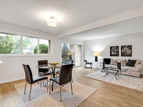 Tired of mowing the lawn or shoveling snow? Enjoy maintenance-free living no landscaping, no shoveling snow, not even clearing off your car in the winter, while still having over 1,800 sq ft of living space. This beautifully renovated 4-bedroom, 3-bathroom townhome is a rare find, offering an open-concept main floor, spacious bedrooms, and a finished basement perfect for family living.Location couldn't be better, no need to drive to run errands, with grocery stores, banks, walk in clinics, and more just steps from your door. Plus walking distance to great schools, parks, and trails. Going downtown?? Just hop on the bus to the GO!!! I'm impressed with this home, and I'm sure you will be too. Now...All you have to do is move in! Maintenance fees include water, windows, roof (exterior) and landscaping. All new flooring throughout, all new light fixtures, new kitchen and new kitchen appliances, all new vanities, new tub, all new faucets throughout, freshly painted, and more