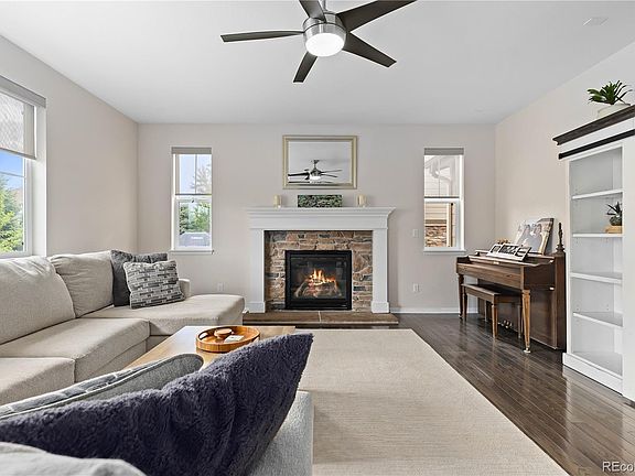 Lovely two-story home in the desirable Cherry Creek School District! This stunning home boasts a seamless open floor plan, perfect for modern living and entertaining alike. You're greeted by a spacious living room adorned with a cozy fireplace, ideal for chilly Colorado evenings. The adjacent kitchen is a chef's delight, featuring a large island, stainless steel appliances, pantry, and ample counter space. Work or unwind in the main floor office/flex space, offering versatility to suit your lifestyle needs. Retreat upstairs to discover the luxurious primary suite, complete with a five-piece bathroom and a generous walk-in closet, providing a serene oasis to escape the day's hustle and bustle. Two additional bedrooms upstairs share a full bathroom with dual sinks, ensuring comfort and convenience for family and guests. The laundry room on the upper level adds practicality to daily chores. Unleash your creativity in the unfinished basement, offering endless possibilities for customization and expansion to suit your vision. Step outside to the expansive lawn, perfect for outdoor activities. Relax or entertain on the large concrete patio, providing the ideal setting for al fresco dining and summer barbecues. Updates abound, with a new hot water tank installed in 2023 and fresh exterior trim paint completed this year. Welcome home!