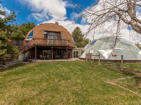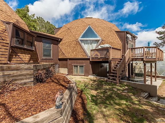Welcome Home to your country paradise in the middle of it all! This beautiful Geodesic Dome Home is nestled on nearly 3 acres and shows nothing but pride of ownership! This Buckminster Fuller design open layout features gleaming hardwood floors and a European kitchen with a gas range, roll out shelves and more than ample cabinets and counter space. It’s unique triangular design is meant for the upmost ease of use! You will enjoy entertaining in the dining room which flows into the spacious family room showcasing a 23’ floor to ceiling fireplace making it the focal point of the first floor! Tons of windows drenching the main floor in natural sunlight and allowing direct views of Pikes Peak! Storage galore with large walk-in pantry! Main floor (non-conforming) bedroom is spacious with en-suite 5-piece bathroom. Upstairs you will find two very large secondary bedrooms and ¾ bath! Make your way down to the finished walk-out basement and enjoy the recreation room with cozy fireplace, flex space that is perfect for a home office or work out room! Two large bedrooms sharing a full bathroom. Fully fenced in acreage and fenced in immediate back yard! This dome home was built with energy efficiency in mind. Enjoy the private and serene setting with over 60 trees on the entire property! If you love to plant and grow you will be in awe of the 1300+ sqft growing dome that will surely impress! Horse property with a 4-stall 2-story barn including electricity and covered RV parking! Heated garage is HUGE with space to fit up to 4 cars and/or a workshop! Don’t miss out on the opportunity to own such a unique and fabulous property that is within just minutes of modern conveniences! Scheduled your showing today!
