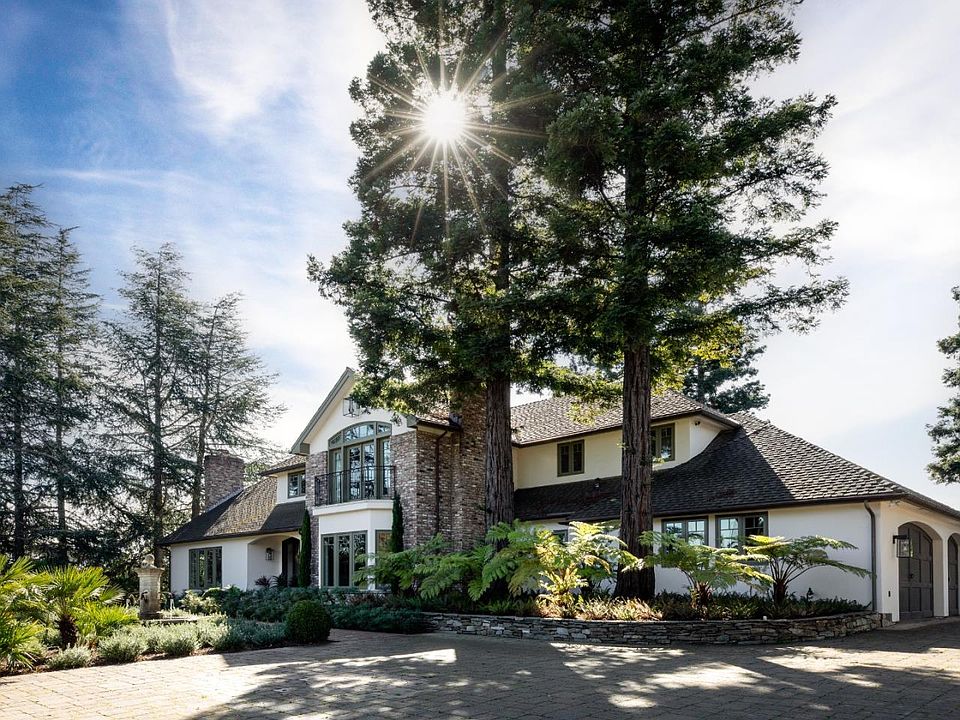 From the moment of arrival, this home radiates an ambiance of inspired beauty with inspiration from the European countryside. Enlivened by the sound of a vintage fountain and overlooking a vineyard and orchard, the home feels miles away yet is just one mile from the convenience of the Los Altos Village. Sweeping grounds of approximately 1.25 acres with western hill views surround the estate home, which has been transformed with chic designer style in an all-white palette complemented by mid-tone hardwood floors. The spacious two-story home has 5 bedrooms and 4.5 baths, including a main-level guest suite plus luxurious upstairs primary suite, additional suite, and two bedrooms with shared bath. Beyond the formal living and dining rooms, the home features a stunning kitchen, two-story family room with temperature-controlled wine cellar, and a versatile room for office, recreation, or library. This home also presents a rare opportunity to expand the home to over 7,000 square feet. The private rear grounds offer a tranquil retreat with sparkling pool and spa, pergola-covered lounge, and vast level space for play and entertaining - all with a backdrop of the western hill views