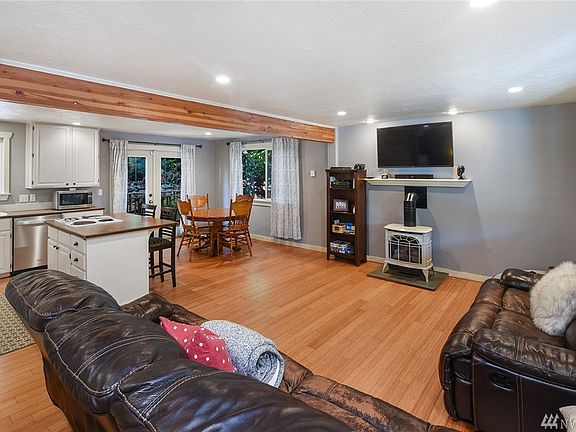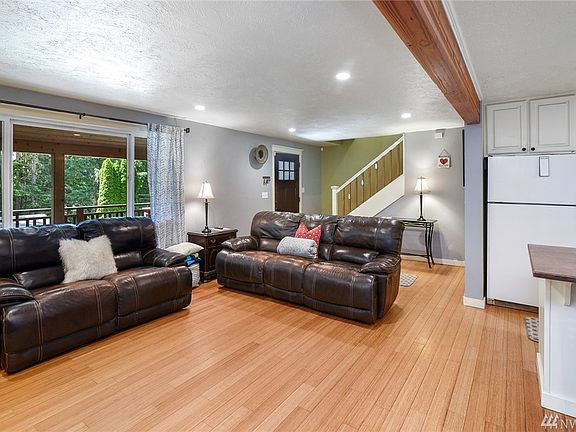 Home ownership awaits at this delight in Edgewater Estates. Inside discover a flowing main floor featuring a welcoming living room with cozy stove steps from the open kitchen & dining. You'll also find 2 beds & a flexible bonus room upstairs plus den/office & laundry on the lower level. Outside enjoy quiet summer nights on the large deck overlooking a fenced yard surrounded by mature trees & greenery. Within easy reach of community amenities, Poulsbo shops & the Hood Canal Bridge, see it today!