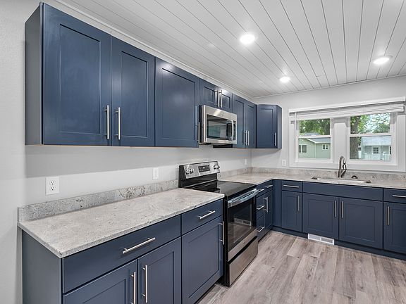 A beautifully updated 4-bedroom, 3-bathroom home that perfectly blends modern style with classic charm. With two expansive living areas, this home provides plenty of space to relax, entertain, and make memories. The stunning open-concept kitchen features sleek navy cabinetry, stainless steel appliances, and generous counter space, making it a dream for both everyday cooking and hosting gatherings. The primary suite offers a stylish retreat, while the additional bedrooms provide comfortable, light-filled spaces. The finished basement adds even more flexibility, with a studio-sized bedroom and walk-in closet, an additional bedroom, and a tile-surround bath perfect for guests, a home office, or extra recreation space. The fenced backyard is a private oasis, ideal for outdoor entertaining, gardening, or simply unwinding. A covered front porch adds to the home's charm, offering the perfect spot to enjoy your morning coffee. With a double garage, you'll have plenty of room for vehicles, storage, and hobbies. This home is located in a desirable neighborhood, close to UND campus, University Park, Valley Middle Schools, and the Ralph.