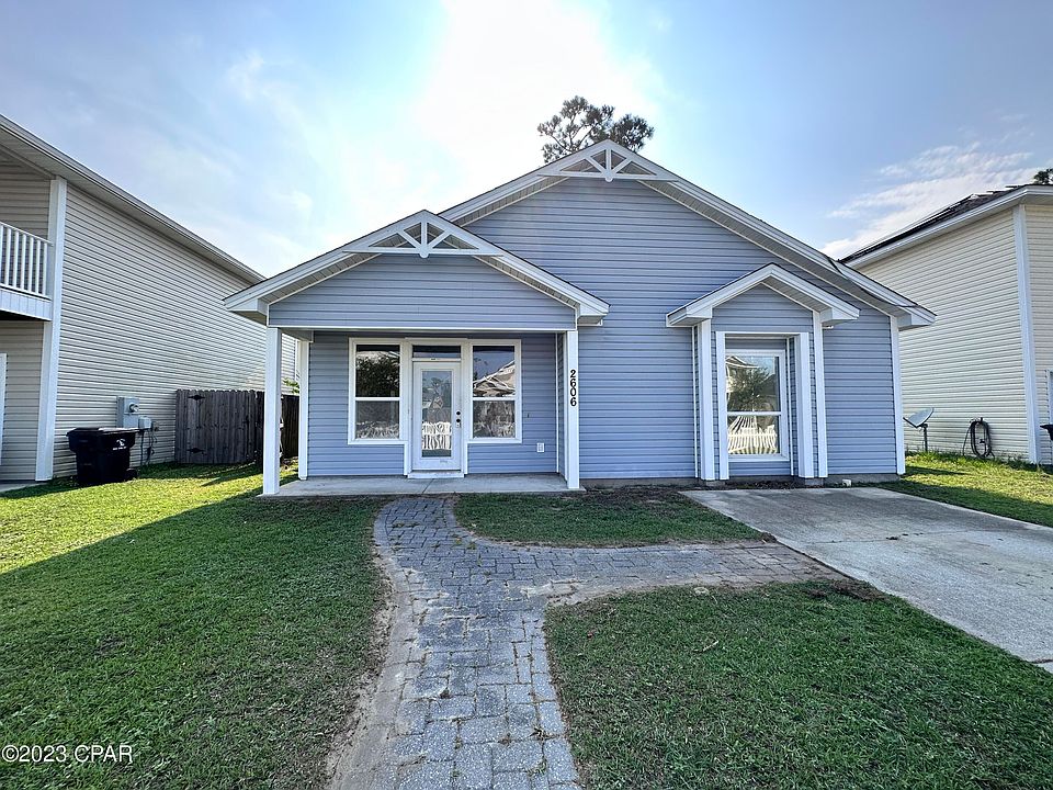 This 3 bedroom 2 bath home has a large family room open to the kitchen with a breakfast bar to separate the space. Down the hall is the laundry and three good sized bedrooms and two full bathrooms. The home was built in 2007 and is in sound condition but will need some work to really make it shine again. This is a great home to really make it your own as you can pick out your own interior colors and flooring to replace the aged carpeting. This is also a very good rental area due to the location as it is close to Tyndall, Panama City and even the beaches.