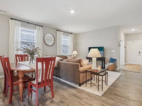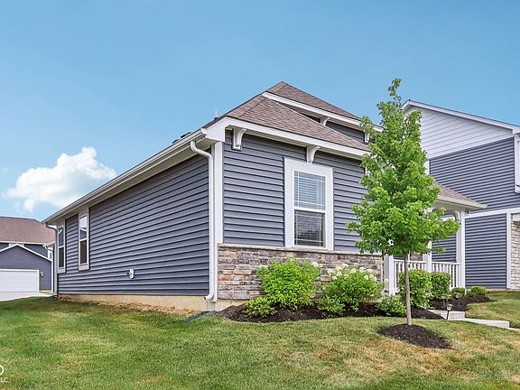 This beautifully appointed 2-bedroom, 2-bath home with a dedicated office combines comfort, convenience, and community. The open-concept layout features a stunning kitchen with quartz countertops, tile backsplash, white cabinetry, stainless steel appliances, a gas range, large island with breakfast bar, and a spacious pantry. A sunny breakfast room and inviting great room provide the perfect spaces to gather and relax. The office, complete with French doors, offers privacy for work or hobbies, and with the addition of a closet, it can easily serve as a third bedroom. The primary suite offers a generous layout and full en suite bath, while a second bedroom, full guest bath, and dedicated laundry room add everyday functionality. A glass door opens to a private patio with a stone walkway leading to the attached 2-car rear-load garage, complete with a bump-out for extra storage and laundry room access. Enjoy mornings on your charming front porch and evenings on your patio. Community living is unmatched here, with amenities including a clubhouse with event space, outdoor pool, 24-hour fitness center, bocce, tennis, pickleball and basketball courts, community garden, and an extensive trail system connecting to the Big 4 Trail. This home also comes equipped with America's Smart Home Technology Package-featuring a video doorbell, Honeywell smart thermostat, and smart door lock. HOA fees cover lawn care, snow removal, and trash pickup, making this a truly low-maintenance lifestyle in one of Whitestown's most desirable neighborhoods. The location is unbeatable-just a short stroll to local favorites like LA Cafe, Moontown Brewery, Hattie's Coffee, and Main Street Park, which hosts weekly Farmers Markets, summer concerts, a splash pad, and winter sledding hill. Only minutes from I-65, shopping, and dining, you'll love the small-town charm of fast-growing Whitestown paired with modern conveniences.