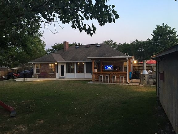 3 bedroom 2 bath home on one of largest lots in Wildwood subdivision. Beautiful open concept with kitchen dining and living room.Kitchen boast solid maple cabinets with built in pantry. Living room has fireplace and wood burning insert also has built in cabinets. Master bedroom has 2 large walk in closets and master bath has soaking tub , walk in shower and double vanities. Additional bedrooms feature large closet space. spacious sunroom that is heated and cooled. Backyard has the following recently painted wired shop 12x24 and covered patio 15'-0"x15'0" wired for cable, sound and projector system. Outside also boost patio and grilling area Joyner School District