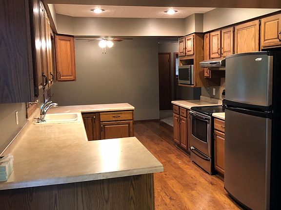 We are ready to make a deal! All stainless steel appliances stay, wood blinds, fresh paint and all new carpet throughout. Great neighborhood! No basement but does have a decent size crawl space for storms. Has a deck and a good sized fenced in backyard with nice shade trees and underground sprinklers! School is just down the road. Also has a heated 2 car garage and an instant tankless hot water heater!