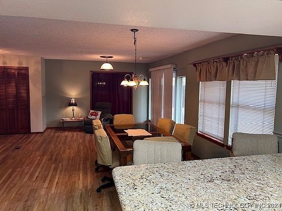 Discover your dream home in this spacious three-bedroom gem, nestled on a peaceful cul-de-sac on the east side of Muskogee. Step into a generous living area that boasts a cozy gas fireplace, perfect for relaxing evenings, along with a designated office space ideal for remote work or study. The adjacent kitchen and dining area create a seamless flow for entertaining and family gatherings.