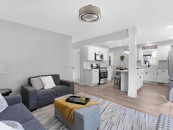 Sieze the opportunity...back-on-market due to buyer financing failure! Welcome to this adorable, renovated, move-in ready 4 bedroom, 2 bath home! Located in a beautiful established neighborhood close to shopping, dining, recreation, schools & more. Feel right at home the moment you enter the spacious great room concept with kitchen & living area that allows you to gather & entertain many comfortably. This fabulous kitchen is a chef's dream with ample countertop space including an island with room for seating & single well granite composite sink. The custom white maple cabinetry feature soft close drawers & doors plus the new LVP flooring helps enhance the abundant light flow throughout the living space. Main level also includes 3 bedrooms with new carpet & renovated full bath. In the lower level you find a guest suite behind the sliding barn door with a 4th non-conforming bedroom, bath with walk-in shower, 6x3 cedar closet & 5x3 laundry closet. Storage space is large enough to create a flex space to allow for workshop, craft area, art studio, etc. Take the party outdoors to enjoy the crisp fall days on the newly installed concrete patio. The oversized garage accessed from the dead-end alley gives you some privacy & room for vehicles plus extra space for storage, work area, etc. Updates are many including: replacement windows throughout, exterior doors, LVP & carpet, interior paint, light fixtures, kitchen, baths, landscaping, patio, & so much more!