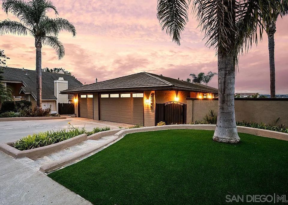 Welcome to 2606 Galicia Way, a stunning Carlsbad residence recently remodeled with top-of-the-line materials, designer finishes, and high-end appliances throughout. This spacious 5-bedroom, 3.5-bathroom home offers nearly 3,500 sq. ft. of thoughtfully designed living space. The main level features a dramatic spiral staircase, open living and dining areas, a chef’s kitchen, and three bedrooms including the luxurious primary suite—all designed for seamless everyday living. The lower level is perfect for entertaining and family life, with two additional bedrooms, a full bath, the laundry room, a versatile den, and a rec room centered around a stylish wet bar—the ultimate gathering spot. A 3-car garage with an additional half bath provides flexibility for parking, storage, or a workshop. Outside, a sparkling pool, lush tropical landscaping, and sweeping views create a private oasis ideal for relaxation and entertaining. This home effortlessly combines modern elegance with the coastal lifestyle Carlsbad is known for.