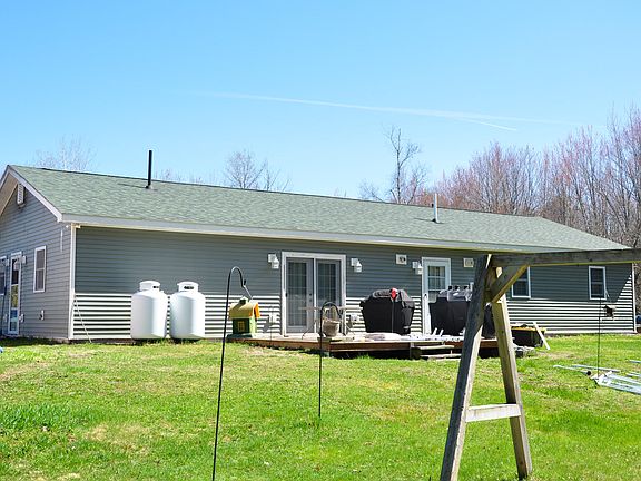 This ranch was built to last just 10 years ago. Single level living with an open kitchen/dining room area, and comfortable den completing the space. Nice woodwork throughout the home is accentuated by the tile and laminate flooring of similar tones. Radiant heating with on demand hot water and backup. Electricity is has a Solar option with Nexamp Solar, and that could save you money if you chose to go that route. Down the hall you'll find 2 generous bedrooms and a full bath in the hallway. At the end of the hall is the master suite with spacious, double sink bathroom with walk in shower: tiled walls and stone floor. A third bath has been plumbed just off the kitchen and near the entrance mudroom area. This would be a 1/4 bath with toilet and sink. Chicken coop and about a dozen chickens would love to stay put. The coop is a condo with heat, water and space; also weasel and fox proof! Fresh eggs every day and a tick free environment, chickens provide more than simple entertainment! 7.5 acres of woods to roam, cool outbuildings, and low maintenance living. 2 car detached garage.