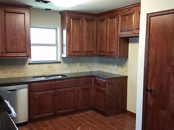 New home in a new development. Located less than 1/2 mile from lake and golf course. Cabinets in kitchen are built to ceiling with adjustable shelves, no particle board used. All cabinet doors and drawers have soft close hardware. Marble tops on cabinets with full tumbled marble backsplash. Raised ceilings in master bedroom and living and dining areas. Pantry in kitchen. Thermopane vinyl windows. Fiberglass exterior doors, adjustable shade in back door. Large covered back porch. Wood look tile in bathrooms, utility room, entry, dining, and kitchen. Carpet in bedrooms and living room. GE dishwasher, GE range, and GE microwave vent hood. Attic storage over garage with large attic stair. Lot is 2/3 fenced, need only one side and a little on the front. Ready for occupancy 10/01/2015.
