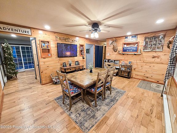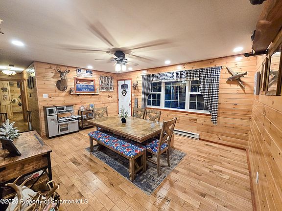 Welcome to an incredible ranch home on 1-acre w/ direct 630 acre Gameland access! Inside, you'll experience a wonderful cabin-style retreat set high above Laurel Run Rd. Work completed includes renovated full bath, oak hardwood floors, live edge wood trim, solid wood doors, tongue & groove wood walls, & recessed can lighting. Downstairs includes a finished walk-out basement w/ rustic galvanized ceiling tiles, LVP flooring, bar area, laundry & 1/2 bath. The 1-car garage is deep enough for 2 cars and/or workshop, & home is set up for a back-up generator. A perfect setting for 1st time buyer, downsizer, or seasonal hunter. Home is situated within the Bear Creek Charter School boundary.