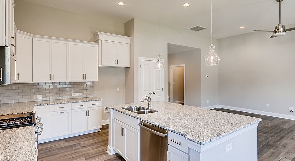 The Stapleton is a floor plan designed with you in mind. The seemingly-endless options allow you to customize your home to fit your life exactly. The main floor is setting for most of the house's action. Off the central hallway are one bedroom and a flex room. The flex room can easily be built as a full-fledged third bedroom, complete with closet space. A full bathroom serves these rooms, as well as any day-guests. Those guests will spend most of their time luxuriating in the oversized family room/kitchen/breakfast area combo to the rear of the home. Again, options abound here, including backyard covered porches and even a sunroom. The spacious owner's suite also resides on the main floor. Up the stairs is an unfinished storage space, but that's only what it seems to be. Really, it's your bonus room, or bonus room plus fourth bedroom, or whatever else you choose. Choose a floor plan that returns the favor by giving you plentiful customization opportunities. The Stapleton is whatever you want it to be. Photos of like homes are being used for illustrative purposes only.