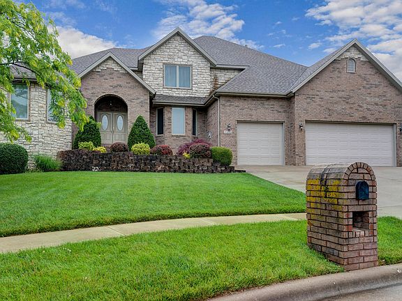 2606 N. 24th Ozark, MO. Wonderful all brick 4+ bedrooms and 4-1/2 bath home with a finished walkout basement offers a main floor master suite with a sitting room, dramatic living room with two story windows, kitchen features granite, stainless appliances, walk-in pantry and hearth room with hardwood floors. Large screened porch (28x15) right off the kitchen to enjoy the views. The upper level has three bedrooms plus an office that could be an additional bedroom. The lower level family room has a large wet bar and fireplace perfect for entertaining and a 39 ft. finished workshop and separate tornado room. The oversized 3 car garage (with one bay having 31.9 ft depth) which is perfect for boat storage. Beautiful backyard is currently bordered by picturesque open acreage.