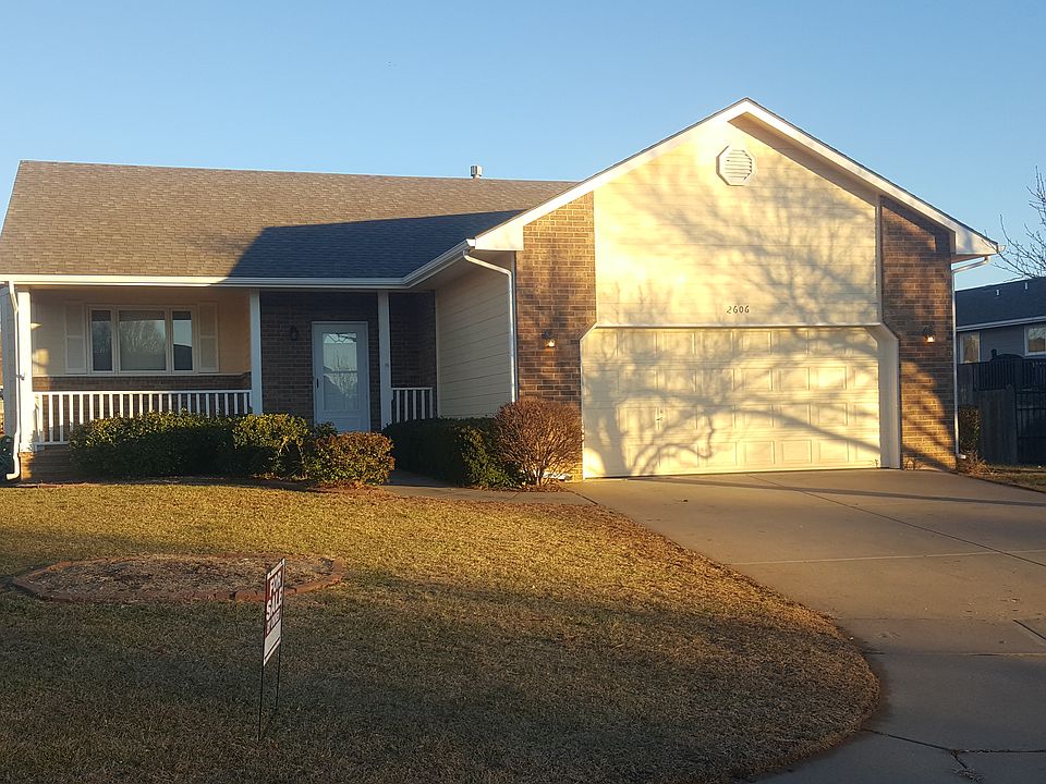 This great home is located on a quiet cul de sac within walking distance of Wichita's fastest growing area for restaurants and retail. Neighborhood association features a community pool and lake. Home is in the excellent Maize school district. Main room has vaulted ceiling and fireplace. Master suite upstairs has bathroom and double closets. Backyard has nice deck with fenced area in yard for dogs and sprinklers for whole lawn! Large bedroom in basement could be quasi- second master suite perfect for in-laws guests or a roommate situation. Recently painted exterior looks wonderful. Priced to move! A rare gem in Bradford community!